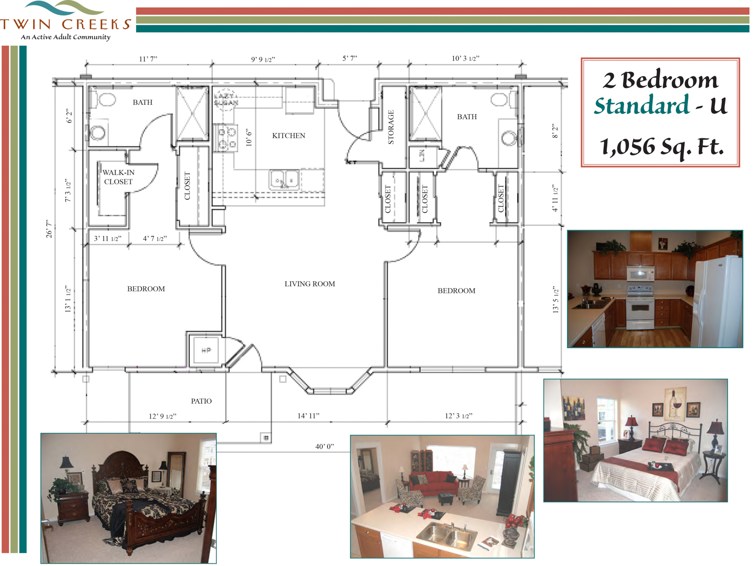 Our selection ranges from a well-designed 436 sq. ft. studio to a 1,600 sq. ft. 2BR/2BA + Den. Many homes include walk-in closets, and all two-bedroom layouts offer two bathrooms. Explore the floor plans below and start imagining how your furniture will fit perfectly into your new home at Twin Creeks Retirement.